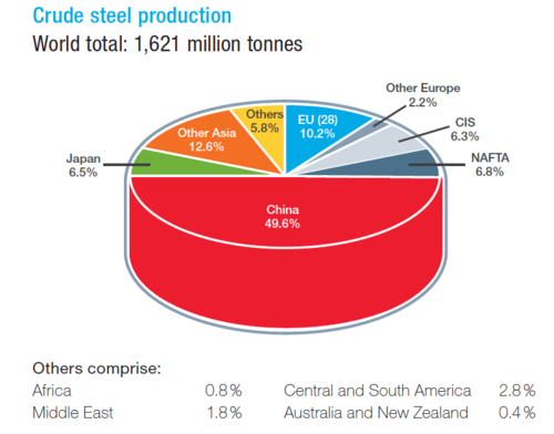 Figure 1: World steel production in 2015 by countries and regions (worldsteel 2016)Studies have documented the potential to save energy by implementing commercially-available energy-efficiency technologies and measures in the iron and steel industry worldwide. However, today, given the projected continuing increase in absolute steel production, future reductions (e.g., by 2030 or 2050) in absolute energy use and CO2 emissions will require further innovation in this industry. Innovations will likely include development of different processes and materials for steel production or technologies that can economically capture and store the industry’s CO2 emissions. The development of these emerging technologies and their deployment in the market will be a key factor in the iron and steel industry’s mid- and long-term climate change mitigation strategies.